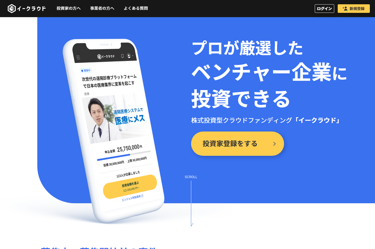 プロが厳選したベンチャー企業に投資できる